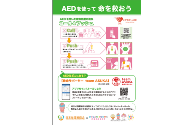 リーフレット『胸骨圧迫&AED』制作・提供 ※「健康ハートの日2024」